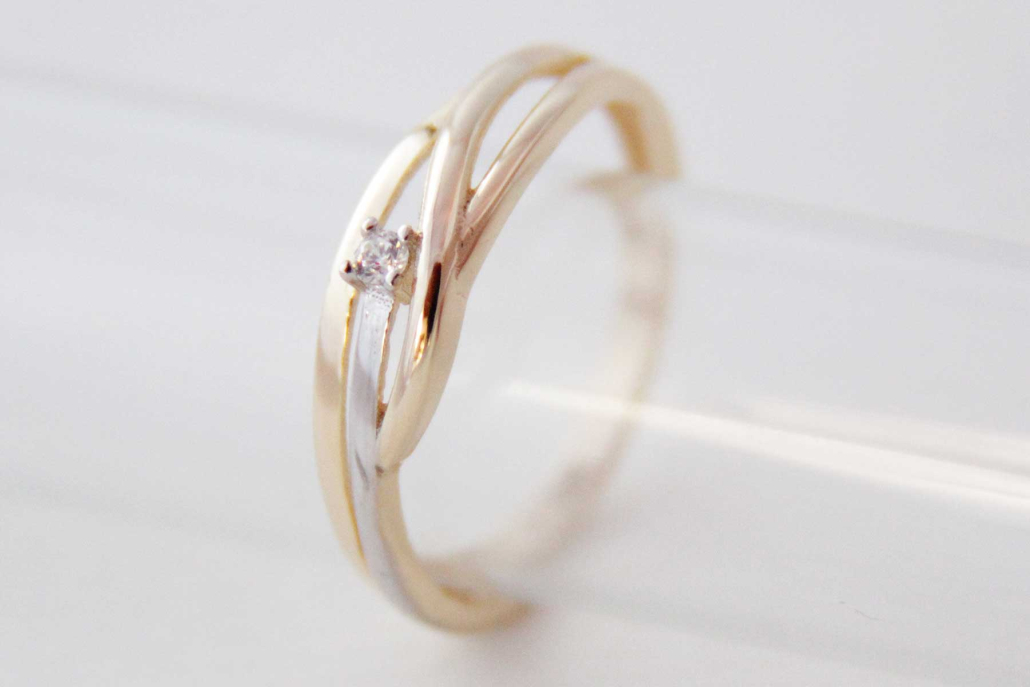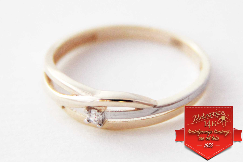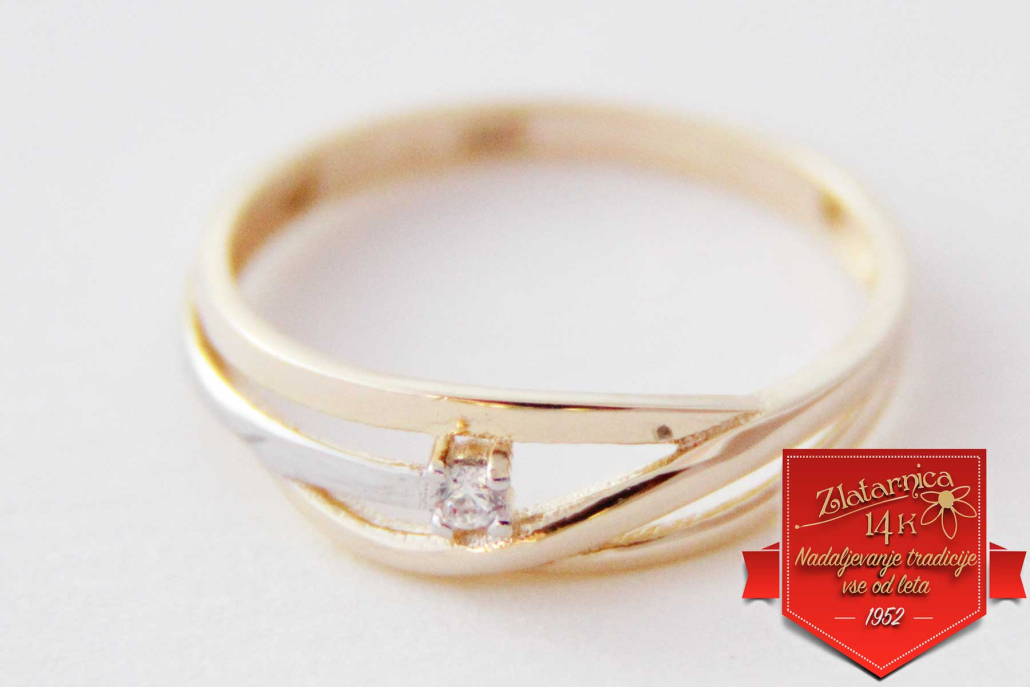 Prstan iz rumenega in belega zlata ter cirkonom.