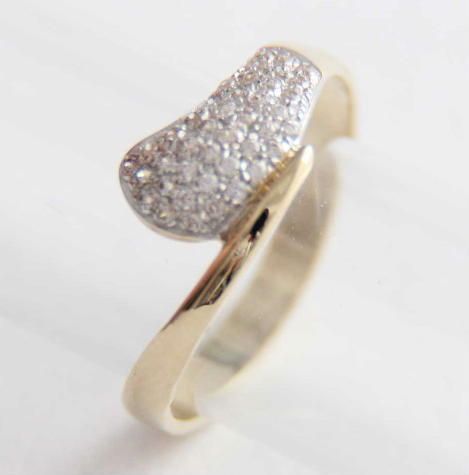 Prstan iz rumenega zlata, obdelanega s cirkoni.