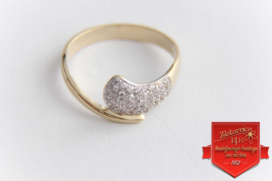 Prstan iz rumenega zlata, v del katerega so vkovani cirkoni.