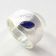 Srebrni prstan z roževcem v obliki čolniča na matirani podlagi, ki spominja na led.