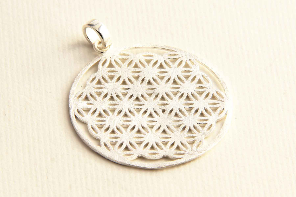 Obesek Roža življenja predstavlja simbol popolnosti časa in prostora. S svojimi vibracijami in resonancami pozitivni vpliva na vaše delovanje in celotno življenje in tako ustvarja pogoje za srečno in zdravo in polno življenje. Poskrbi za harmonijo telesa, pozitivno vpliva na počutje in veča raven energije.