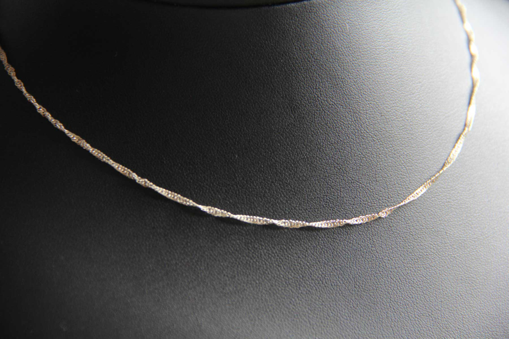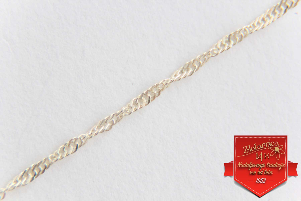 Elegantna srebrna verižica iz ploščatih, spiralno zavitih členov.