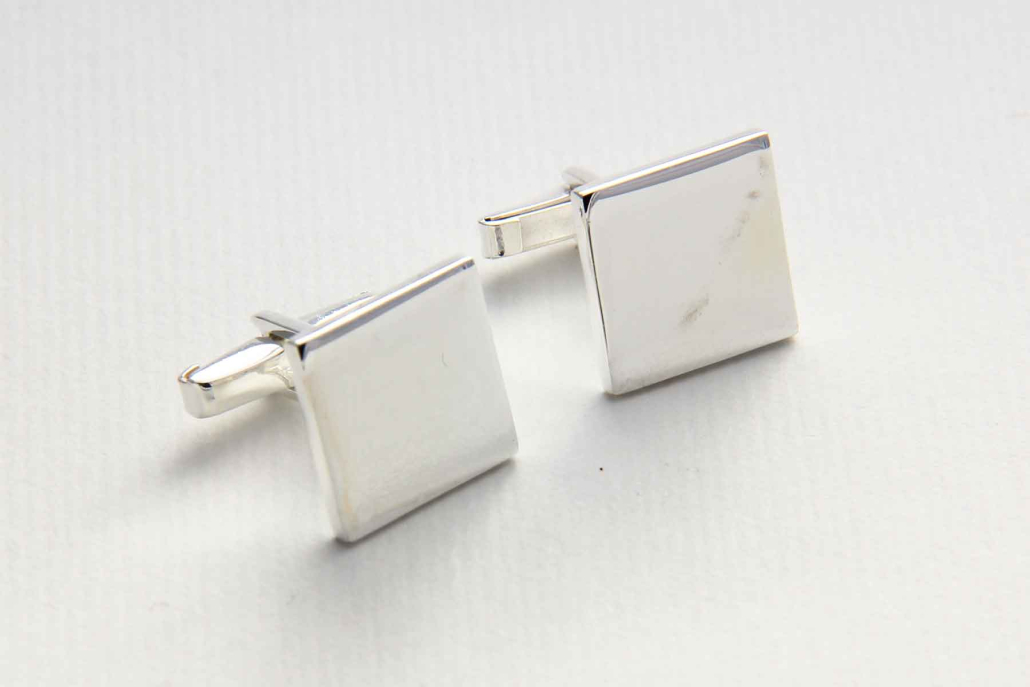 Masivni srebrni manšetni gumbi polirane površine.