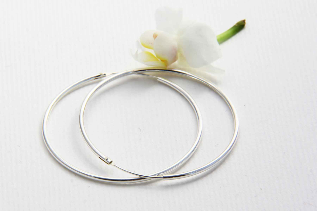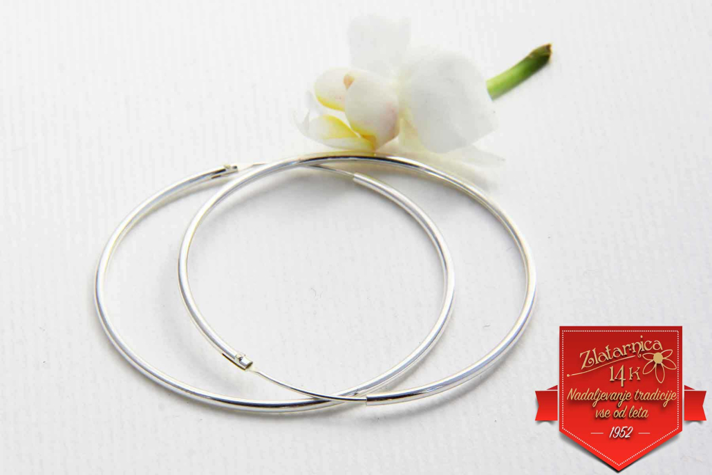 Klasični srebrni okrogli uhani z zapiranjem v cevko.