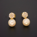 Unikatni uhani sestavljeni iz okroglega dela obdelanega s cirkoni in naravnimi biserom.