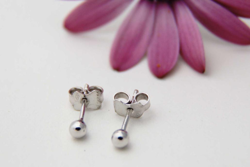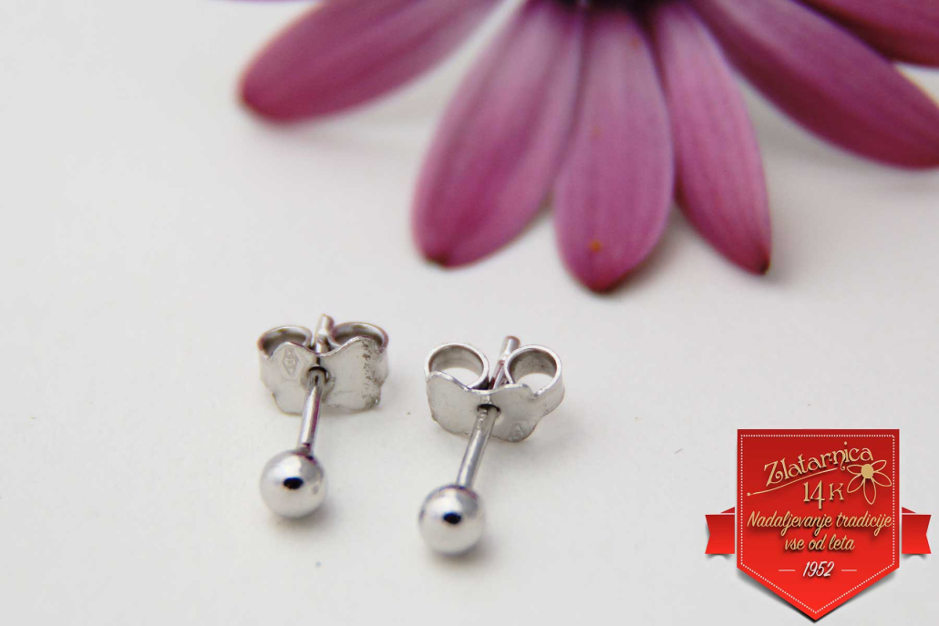 Preprosti uhani iz belega zlata v obliki bunkice.