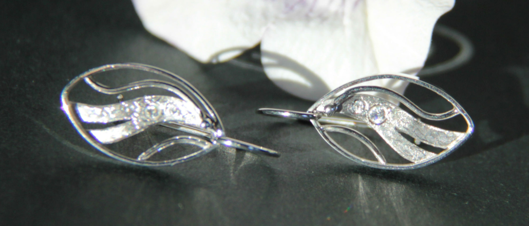 Unikatni in ročno izdelani uhani iz belega zlata in cirkonov.