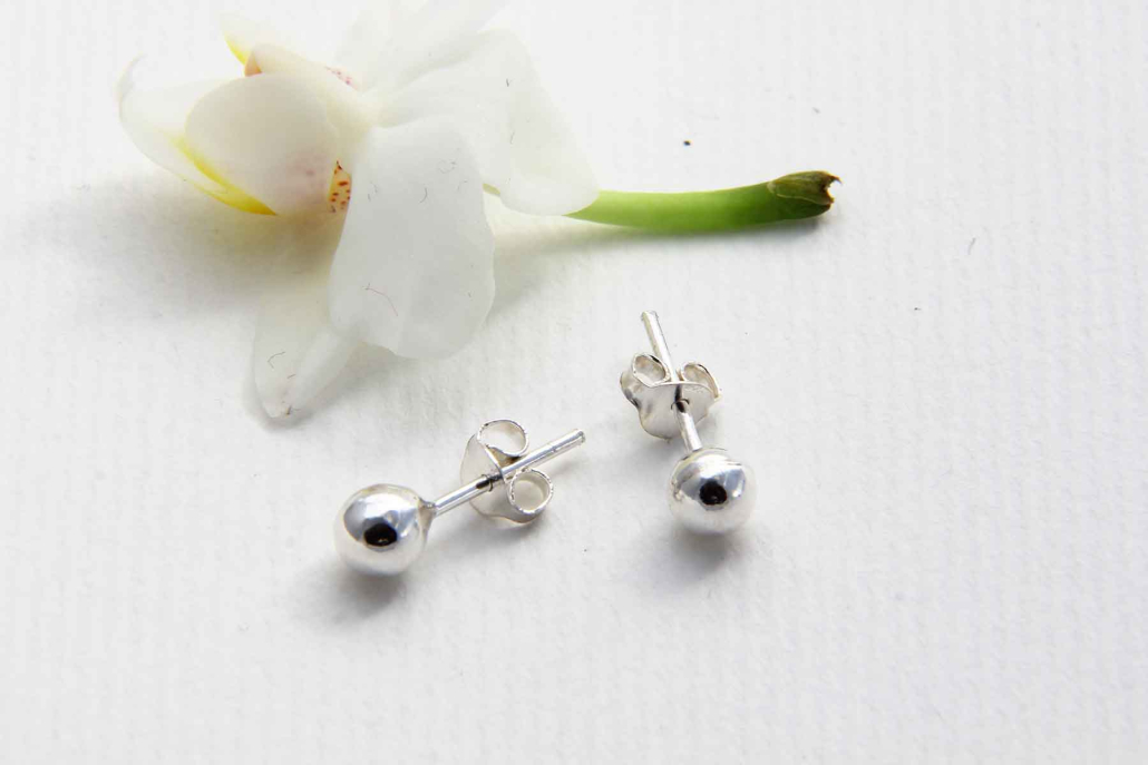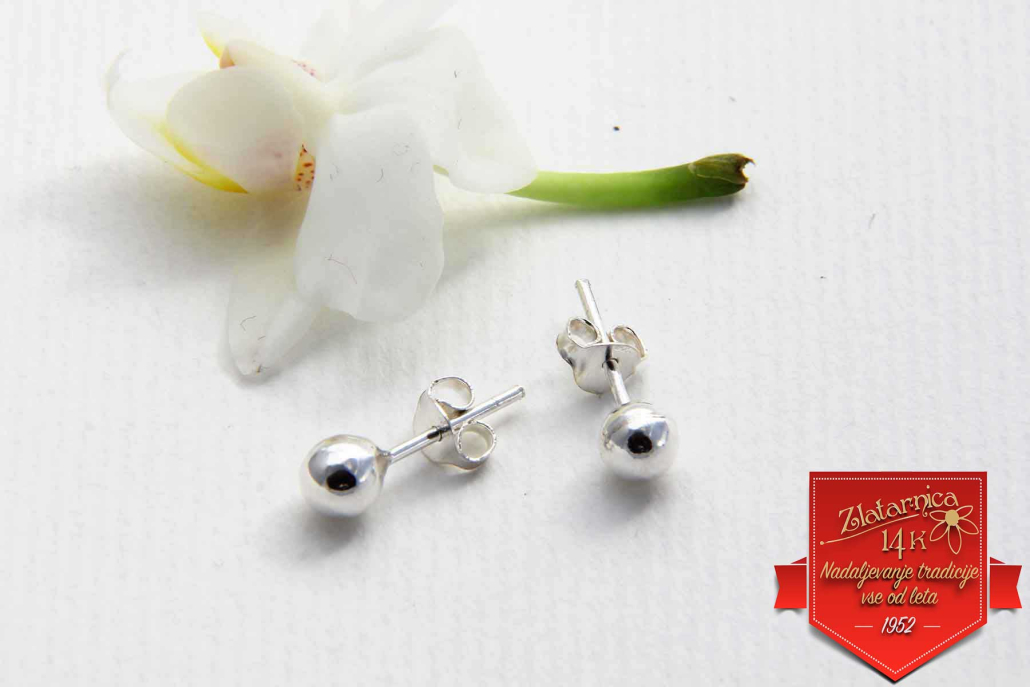 Srebrni uhani v obliki krogljice s klasičnim zapiranjem.