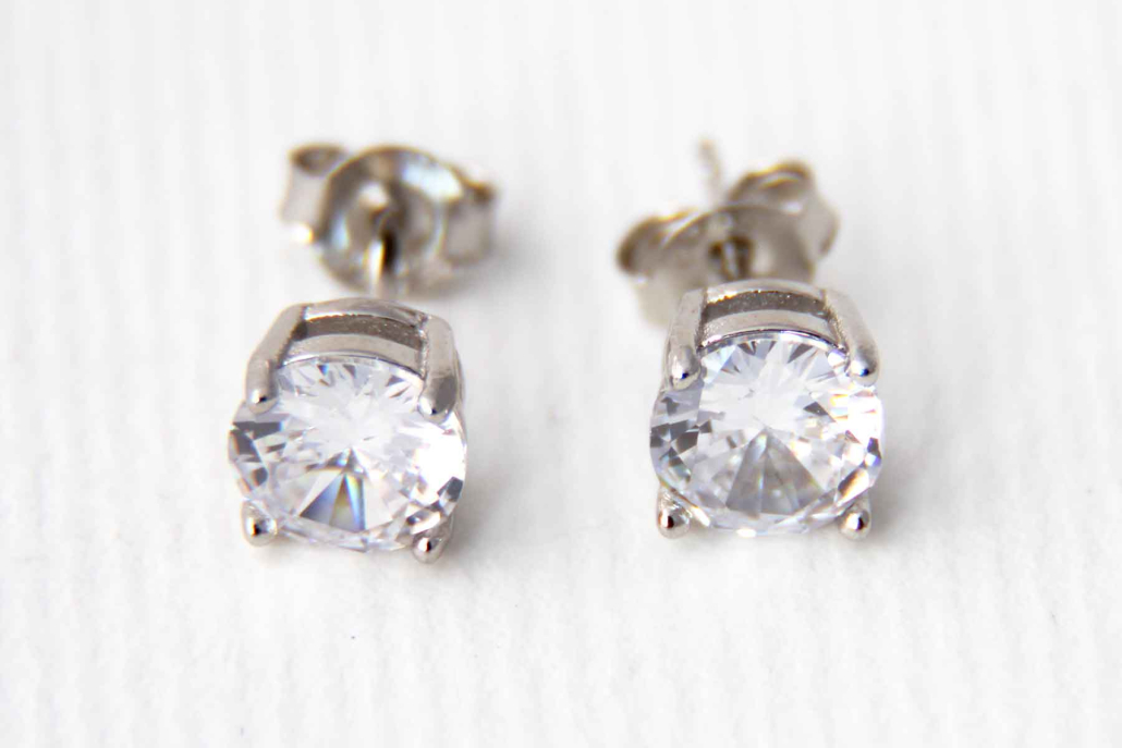 Srebrni uhani na štiri stebričke, med katere je vpet velik cirkon.