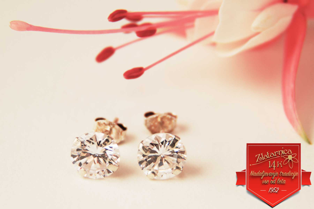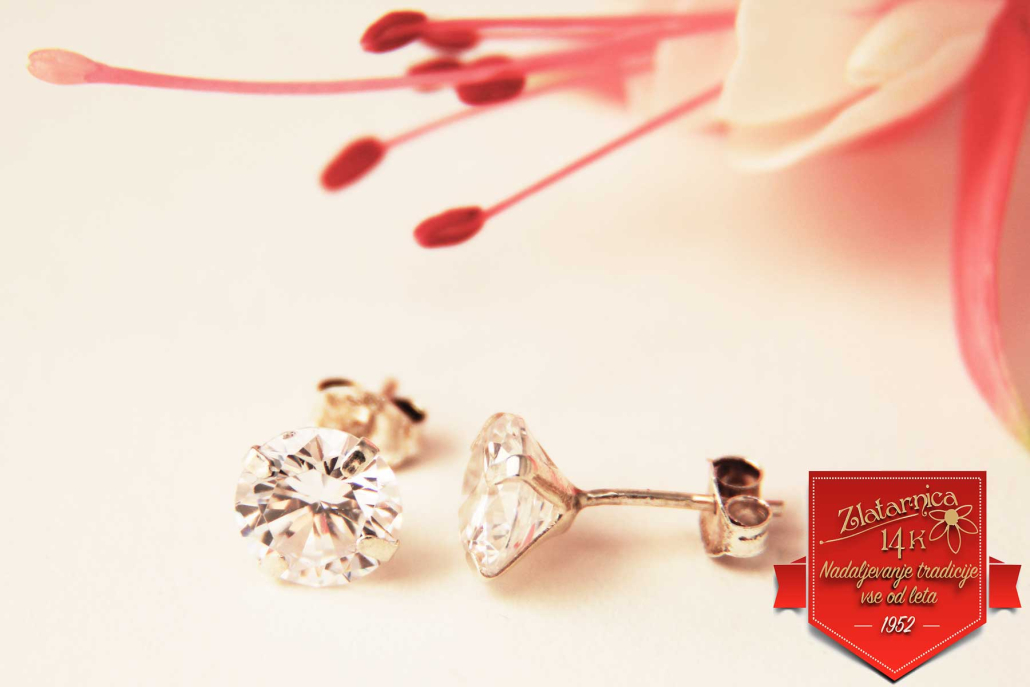 Srebrni uhani na štiri stebričke, med katere je vpet velik cirkon.