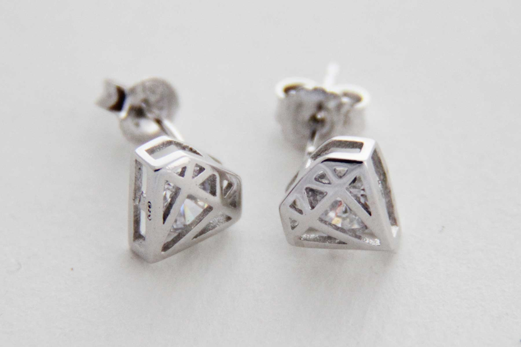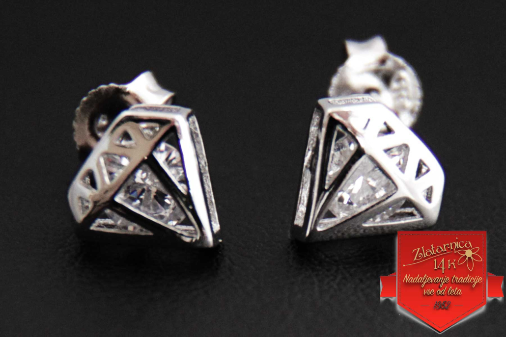 Srebrni uhani v obliki diamanta, v katerem se skriva cirkon.