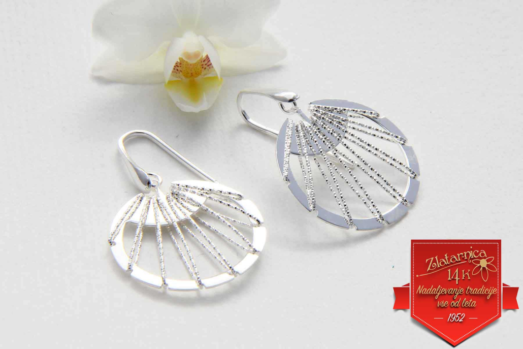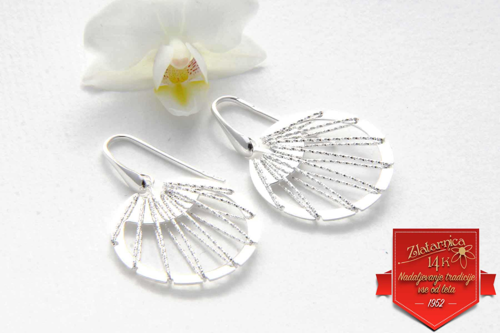 Elegantni srebrni uhani z diamantiranimi žicami in krogom.