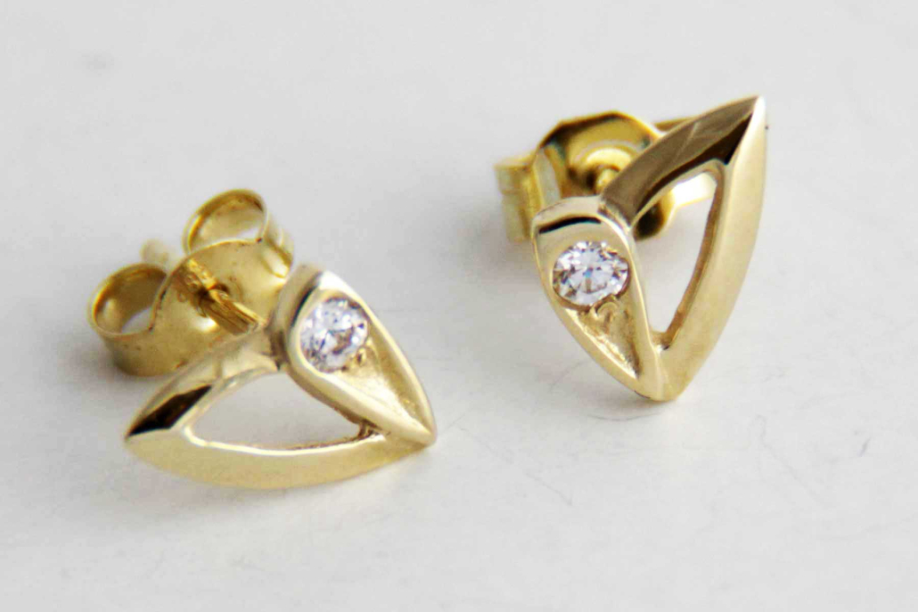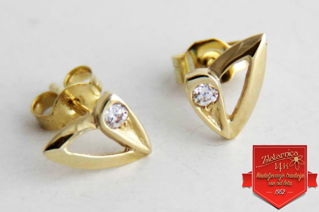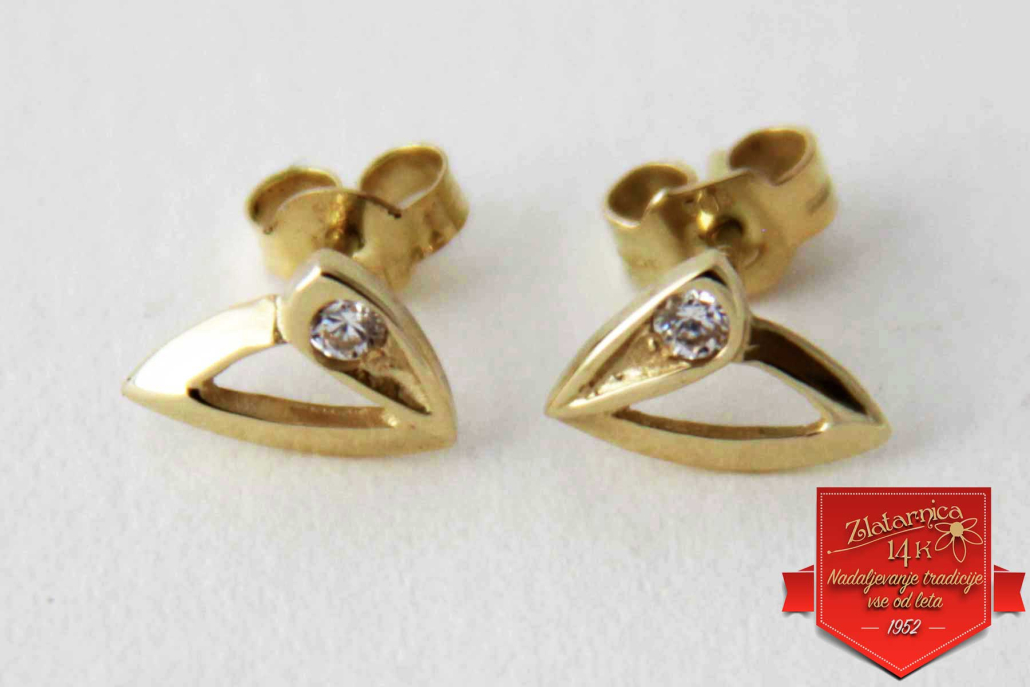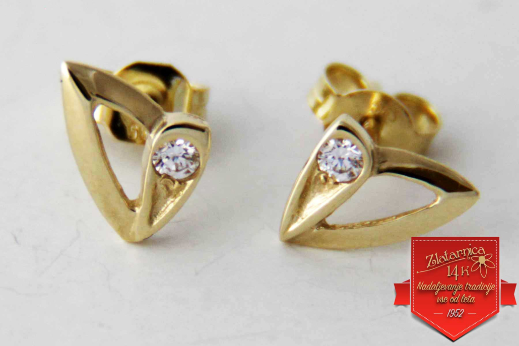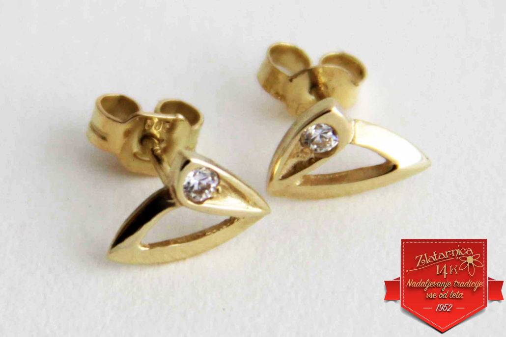Uhani iz rumenega zlata v obliki listov. Stranski list je okrašen s cirkonom.