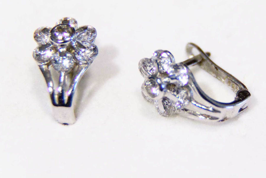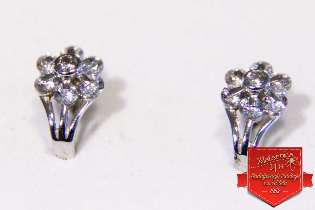 Polkro9žni uhani iz belega zlata v obliki cveta s cirkoni.