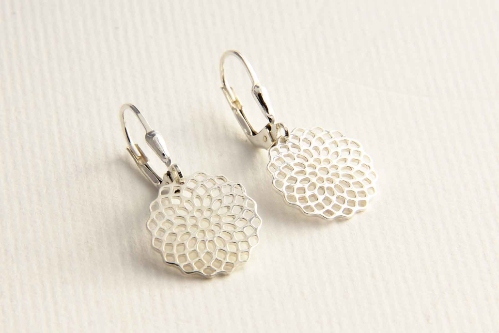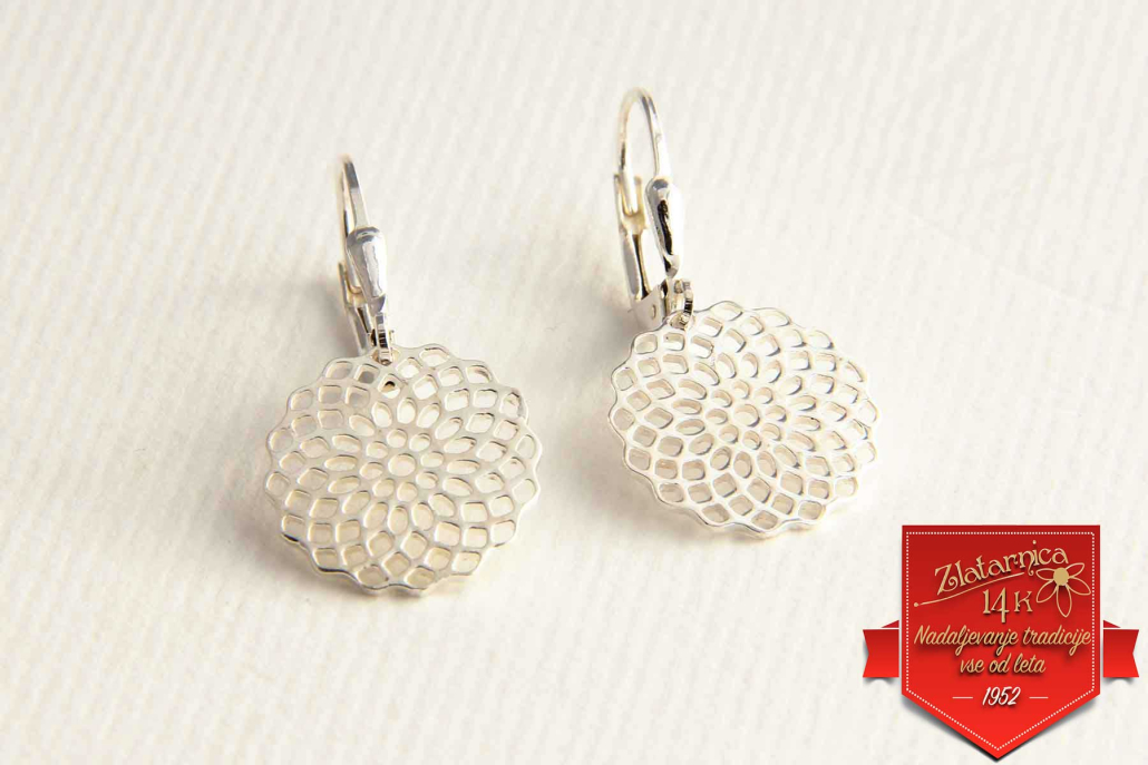 Viseči srebrni uhani z vzorcem mandale v krogu.Prepletajoči liki ustvarjajo posebno elegantnco.