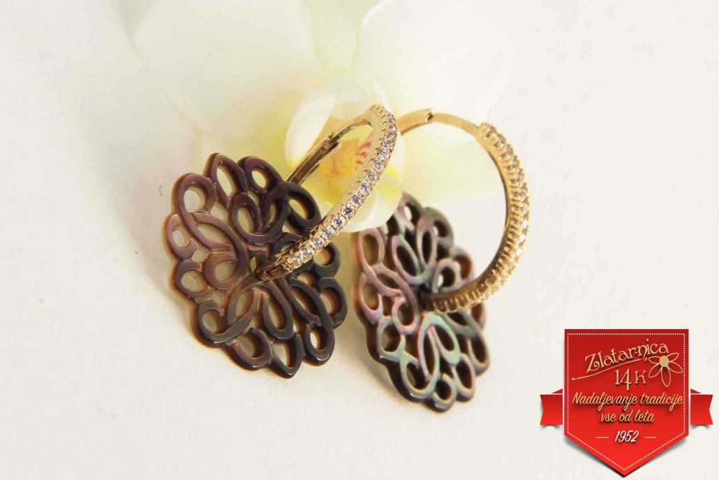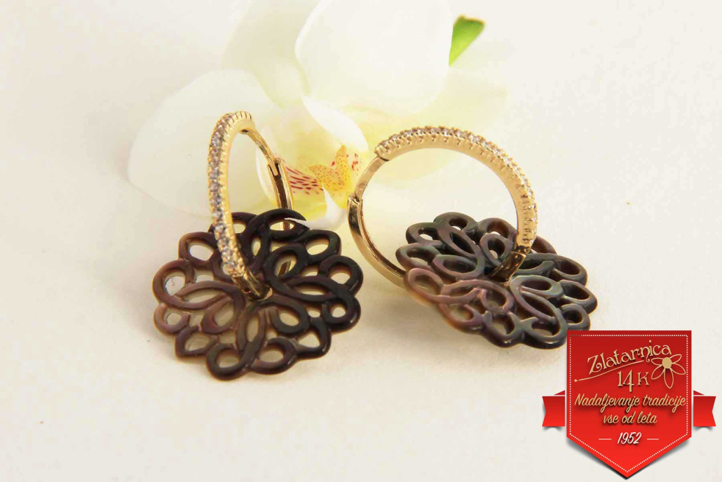Material: rumeno zlato (585), cirkoni, črna školjčna matica Pinctada Maxima.
