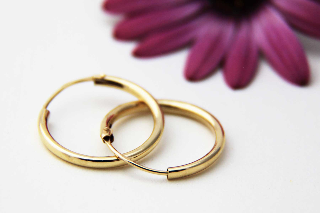 Manjši okroglii uhani-kreoli iz rumenega zlata.