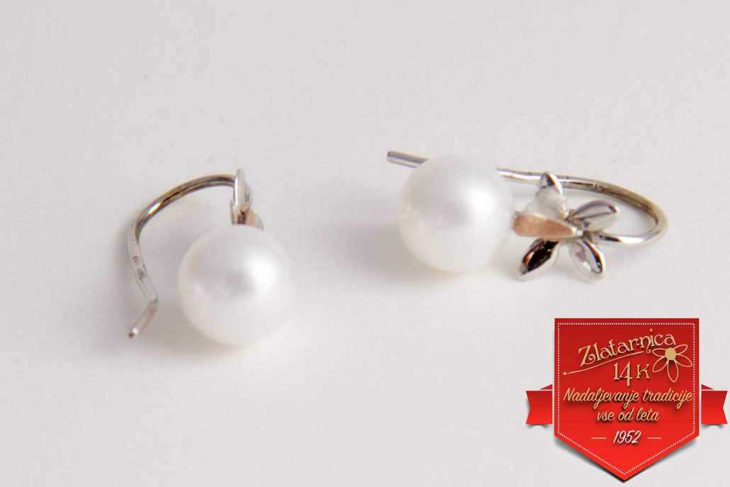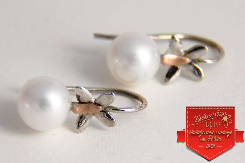 Material: belo/rose zlato (585), sladkovodni gojeni biseri.