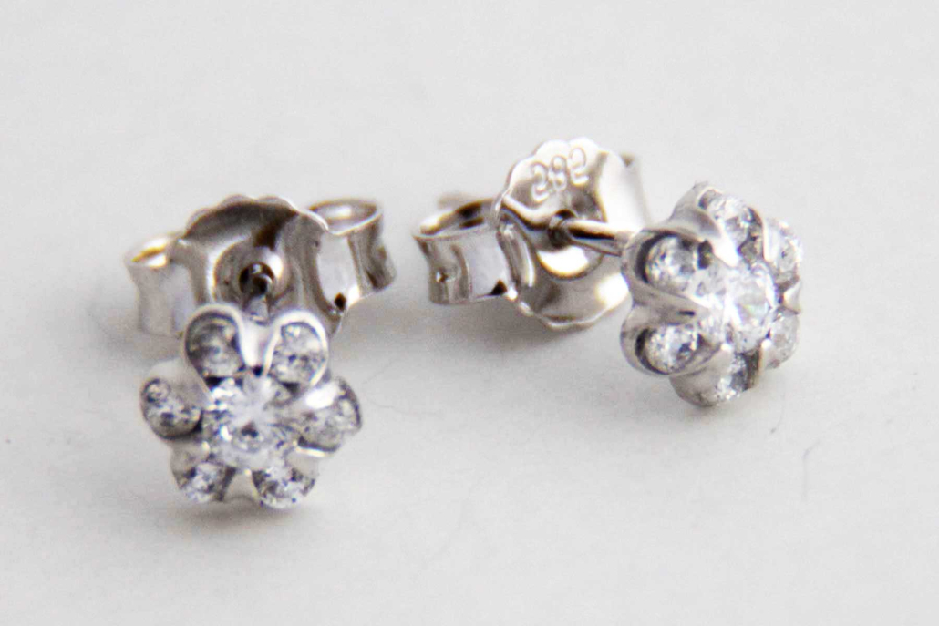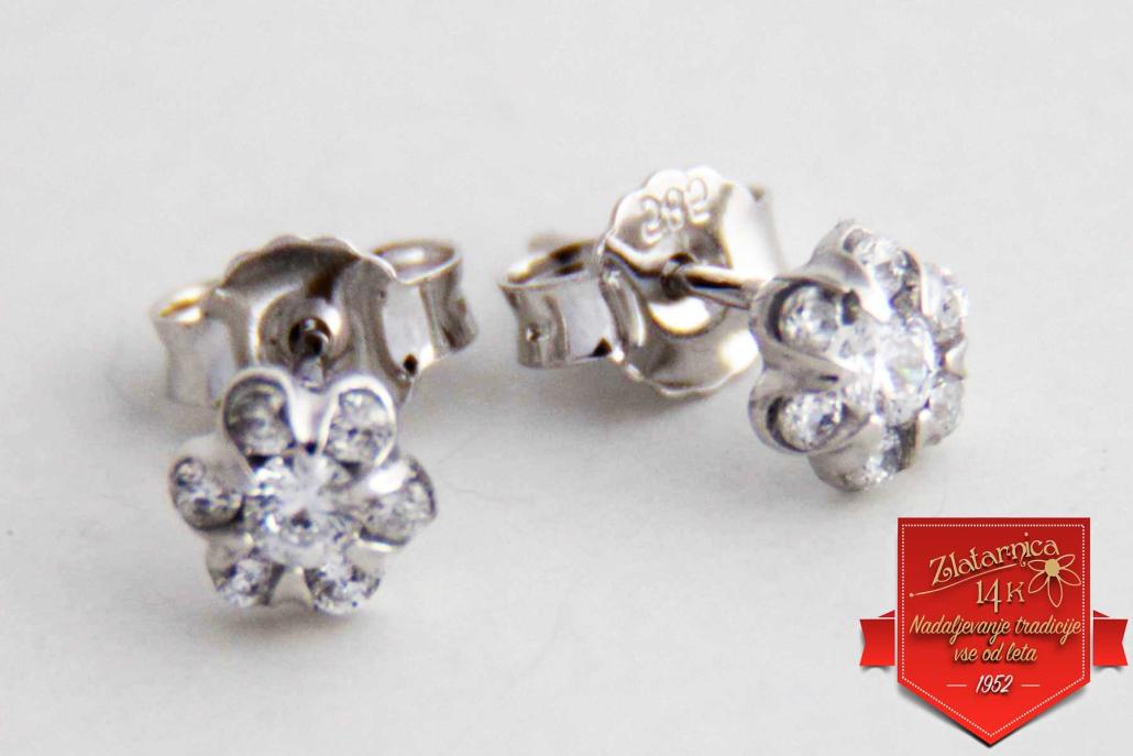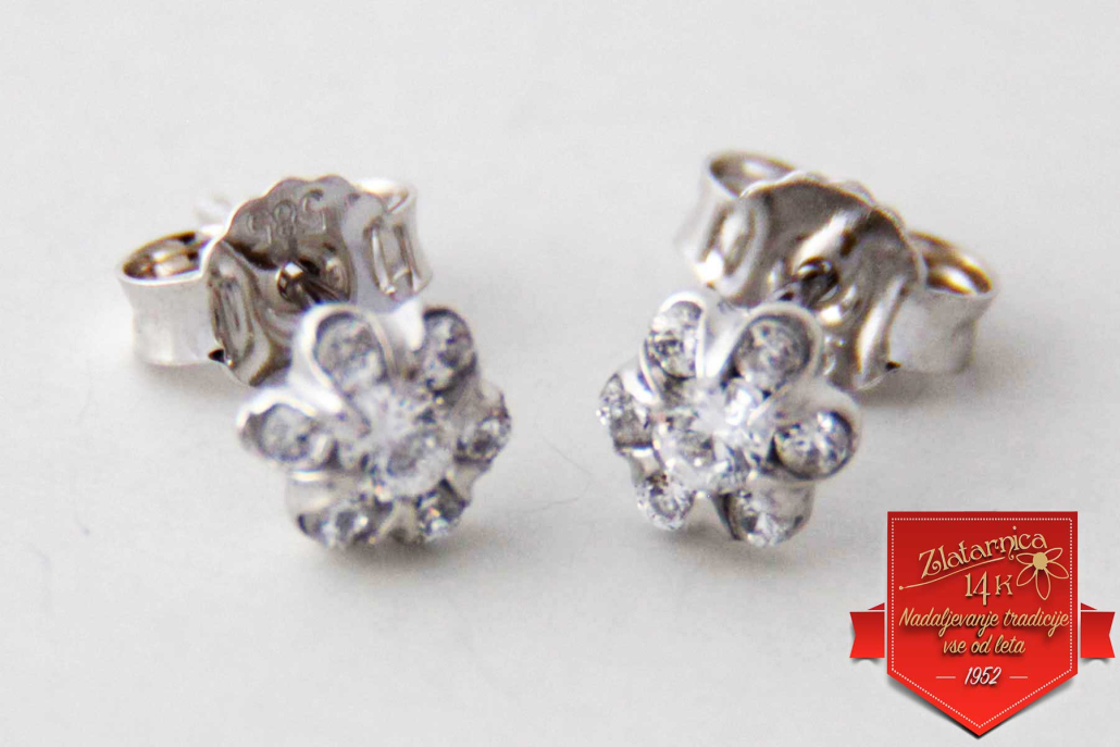 Ljubki uhani iz belega zlata v obliki cvetov s cirkoni.