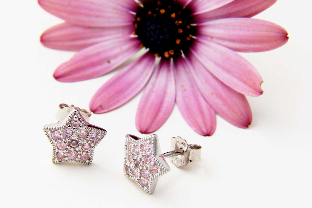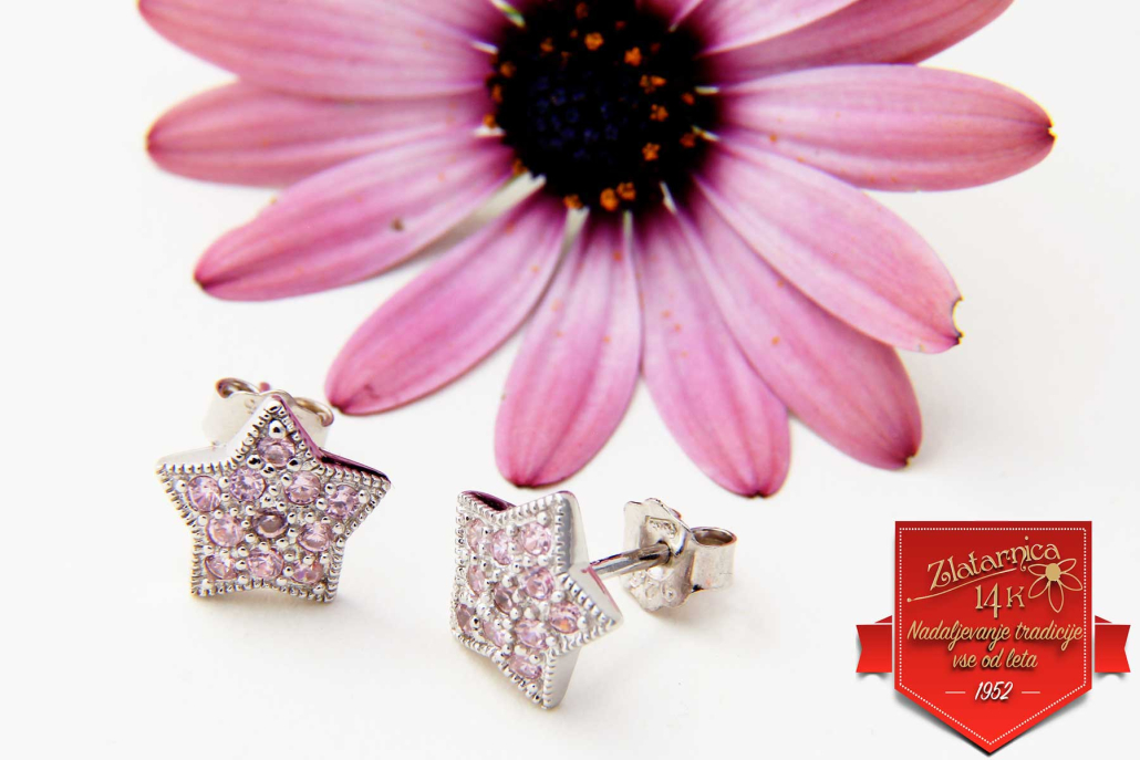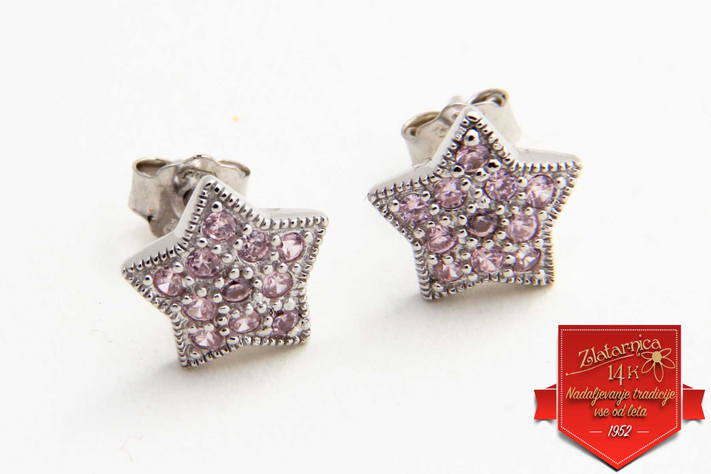 Ljubki srebrni uhani v obliki zvezdic okovanih z pink cirkoni.