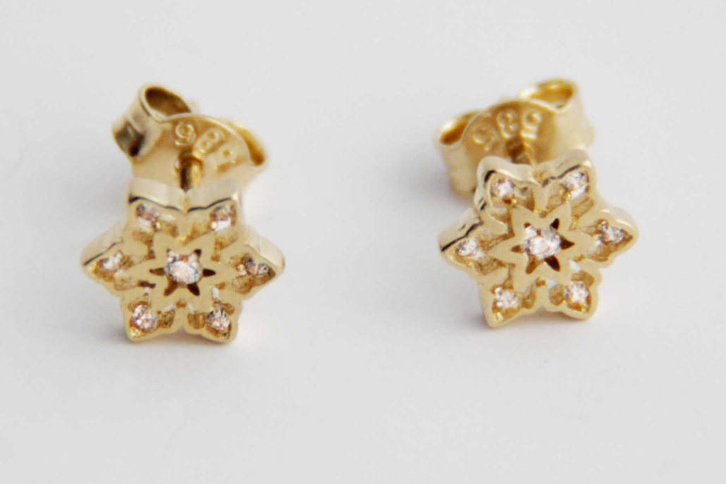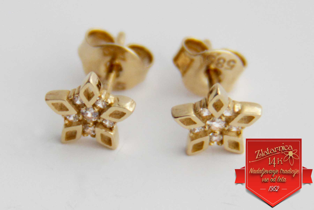 Uhani v obliki zvezdic iz rumenega zlata, z vkovanimi cirkoni.