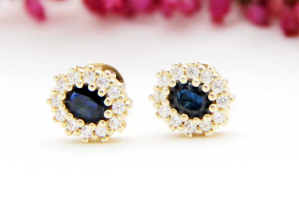 Klasični ovalni uhani s safirji, obrobljeni s cirkoni.