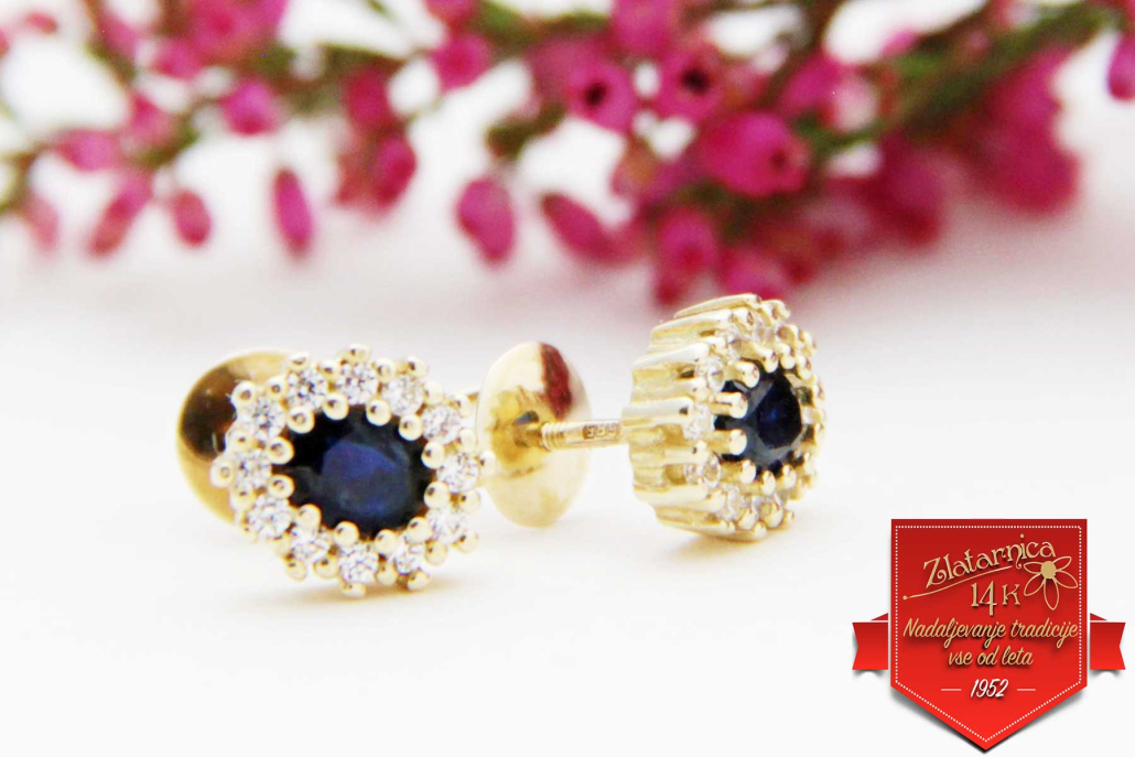 Material: rumeno zlato (585), beli cirkoni in naravni temnejši safir.