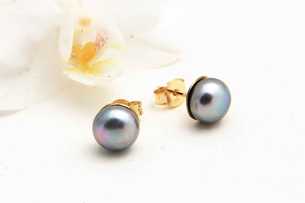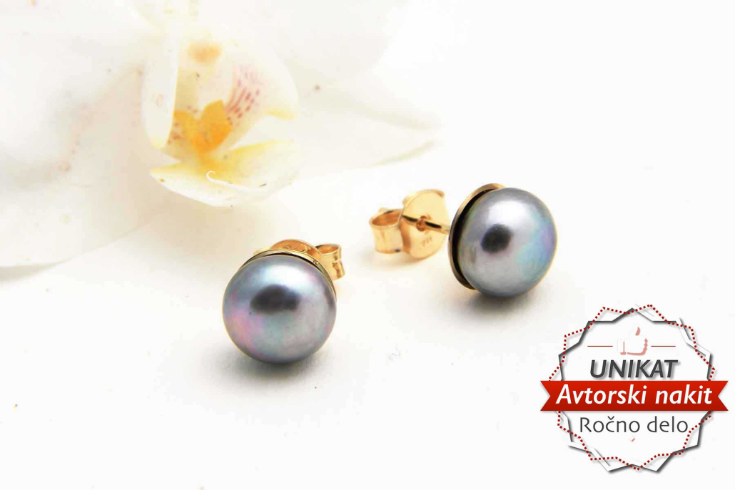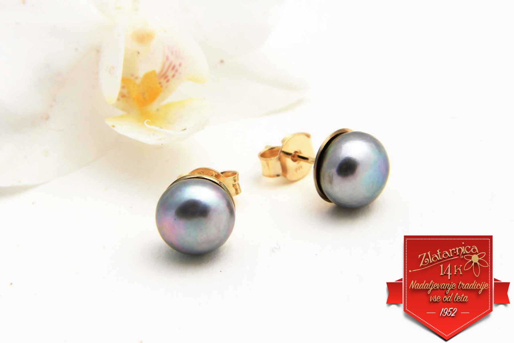 Zlati biserni uhani z sivimi, naravnimi biseri na klasično zapiranje.
