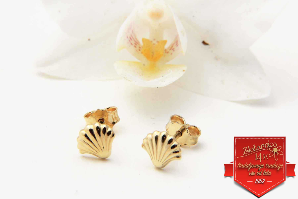 Uhani v obliki rebraste školjke iz rumenega zlata.