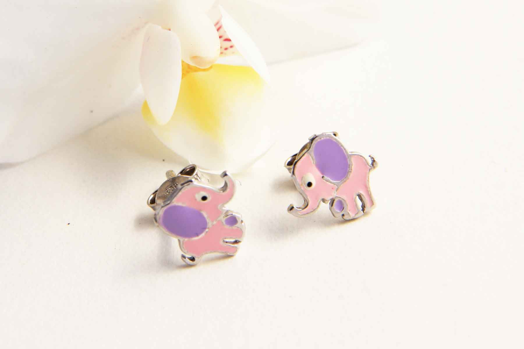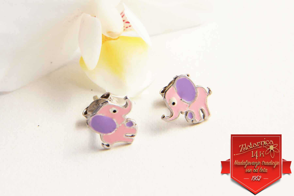 Otroški uhani v obliki slončka, obarvani z emajlom.
