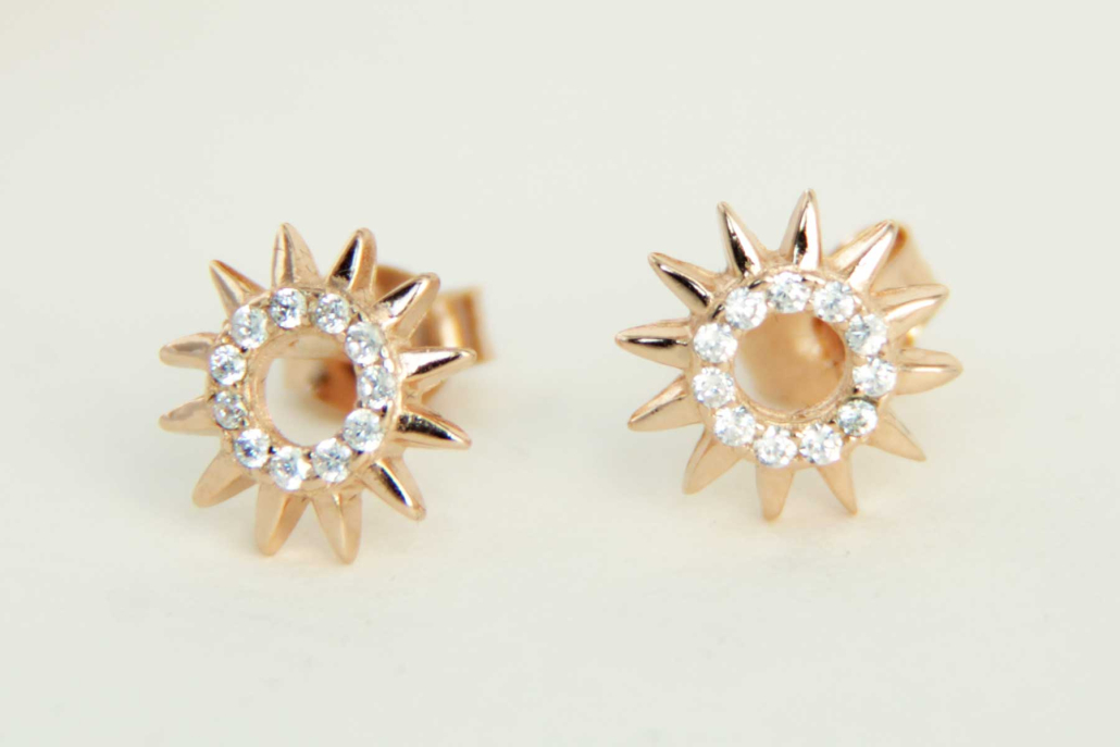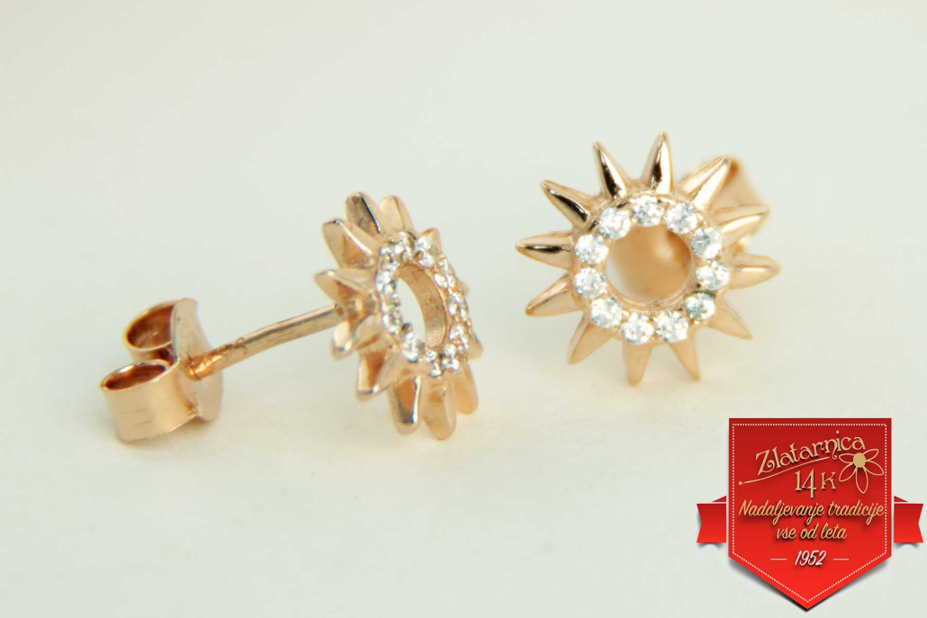 Modni srebrni uhani z rose pozlato v obliki sonca s cirkoni v krogu.