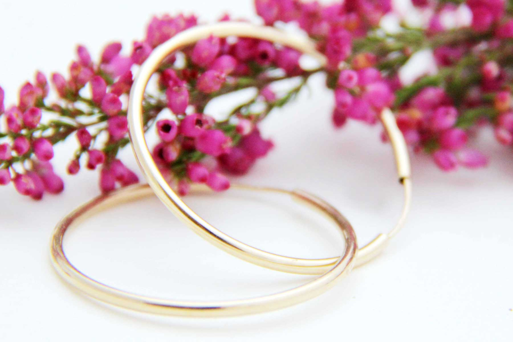 Srednje veliki okrogli uhani iz rumenega zlata.