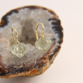 Unikatni, ročno izdelani uhani iz rumenega zlata na kavelj, z naravnim zelenim granatom brušenega v obliko lampijona.