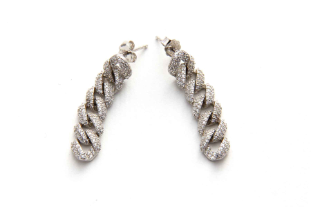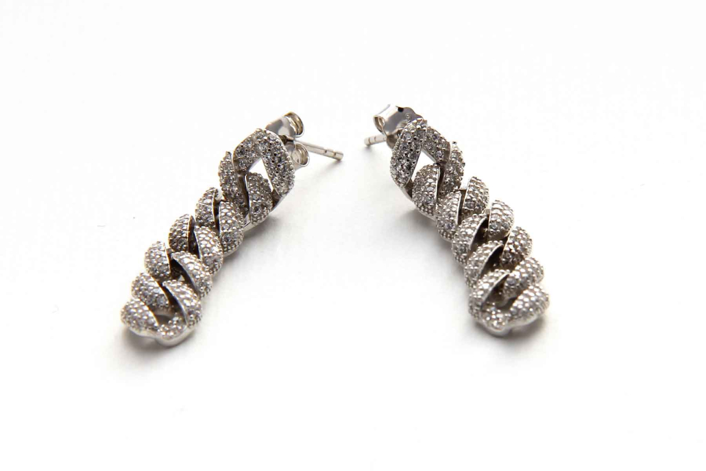 Razkošni srebrni uhani v vzorcu pancer verižice s cirkoni.