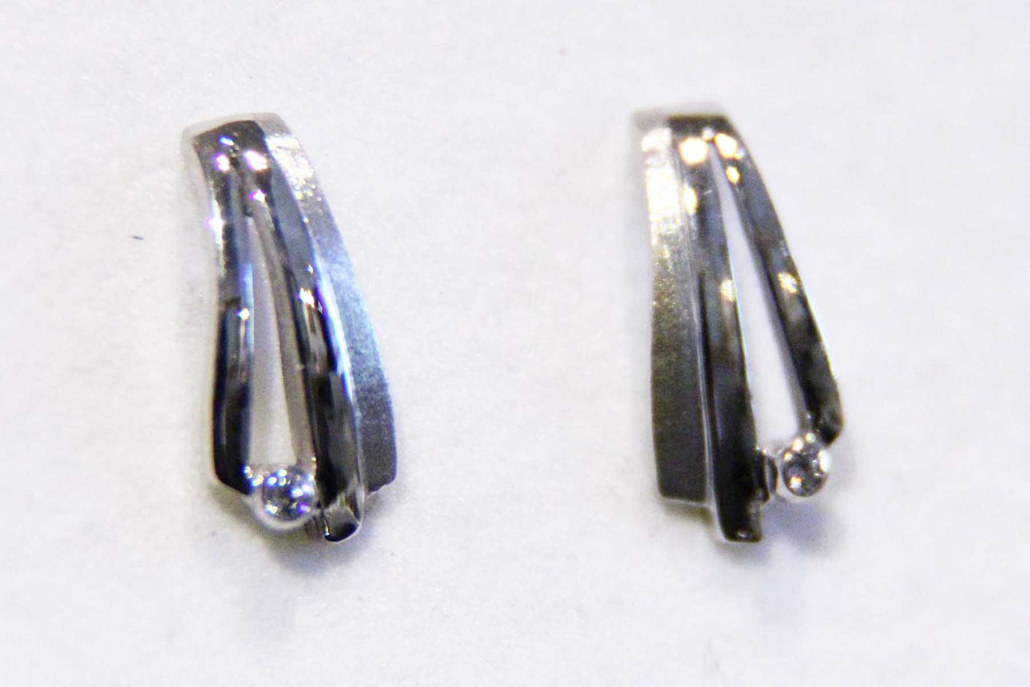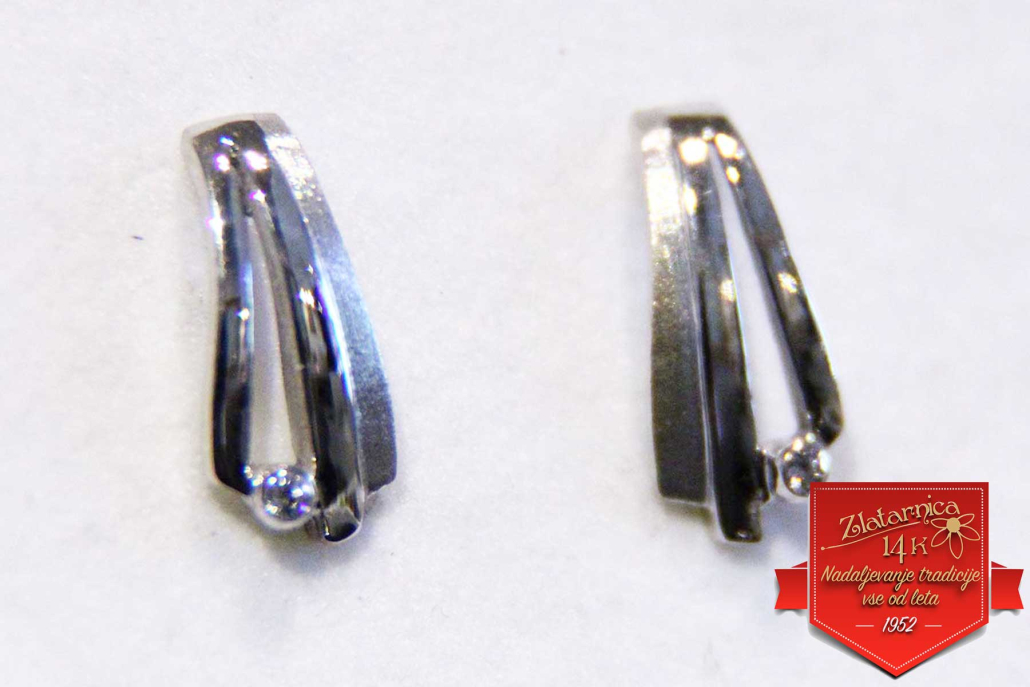 Uhani iz belega zlata iz matiranih in gladkih linij, ki jih dopolnjuje cirkon.