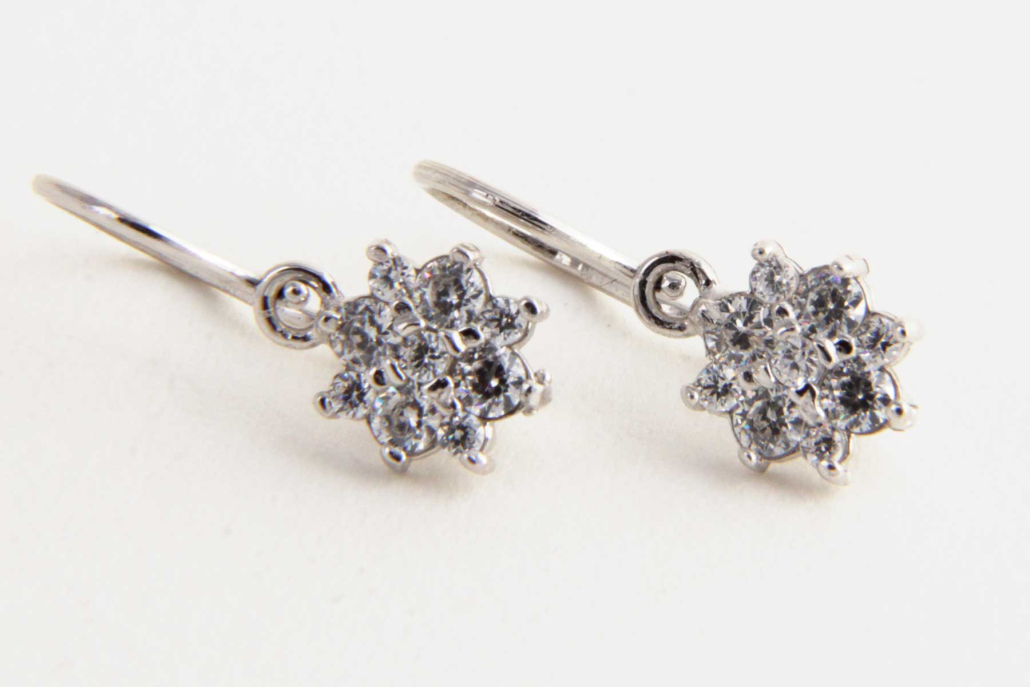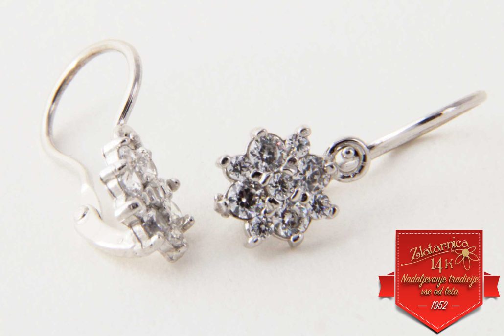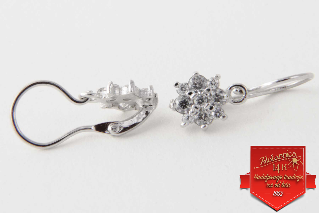 Polviseči, klasični uhani z zapiranjem spredaj z vkovanimi belimi cirkoni.