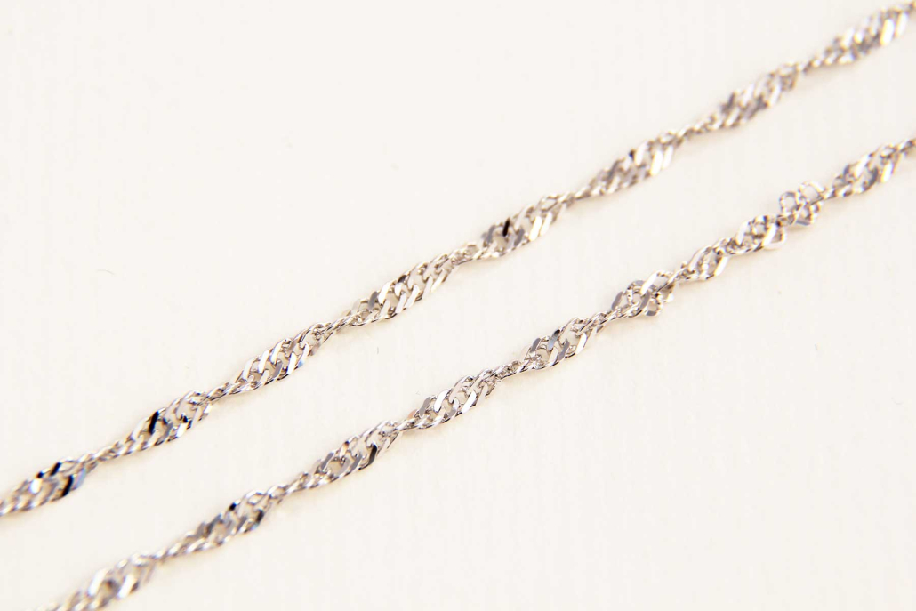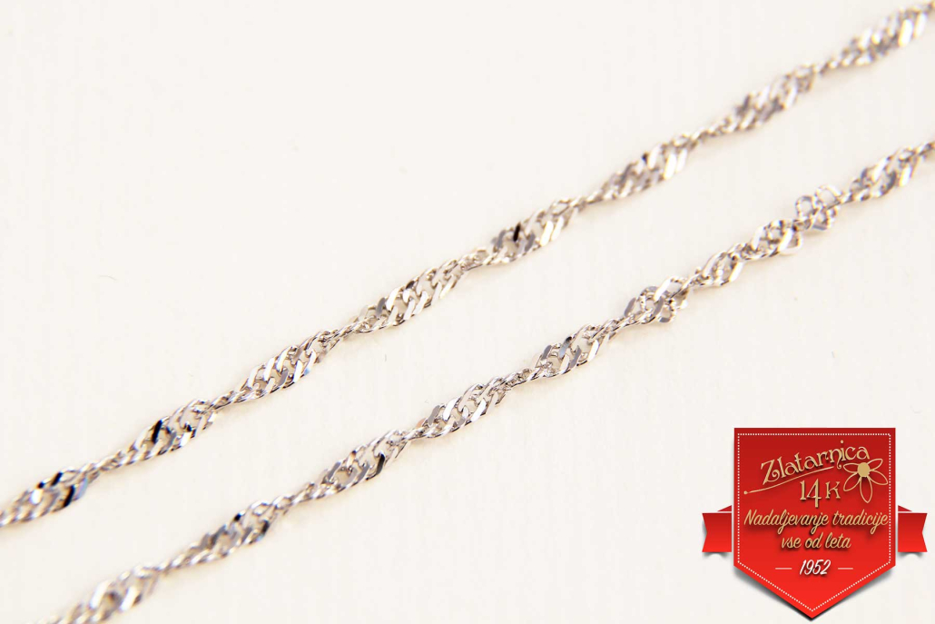 Verižica iz belega zlata, ki jo sestavljajo členi, vezani v vezu singapur.