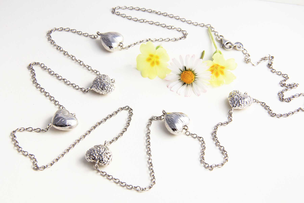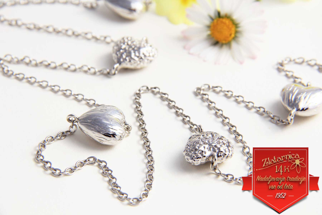 Zelo dolga verižica z vstavljenimi srčki med vzorec.