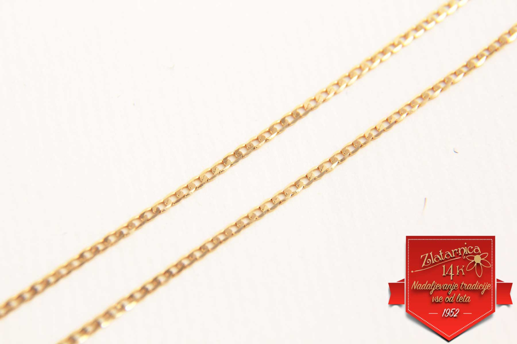 Verižica iz rumenega zlata veza ploščati pancer, primerna za obesek.