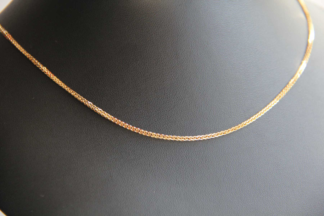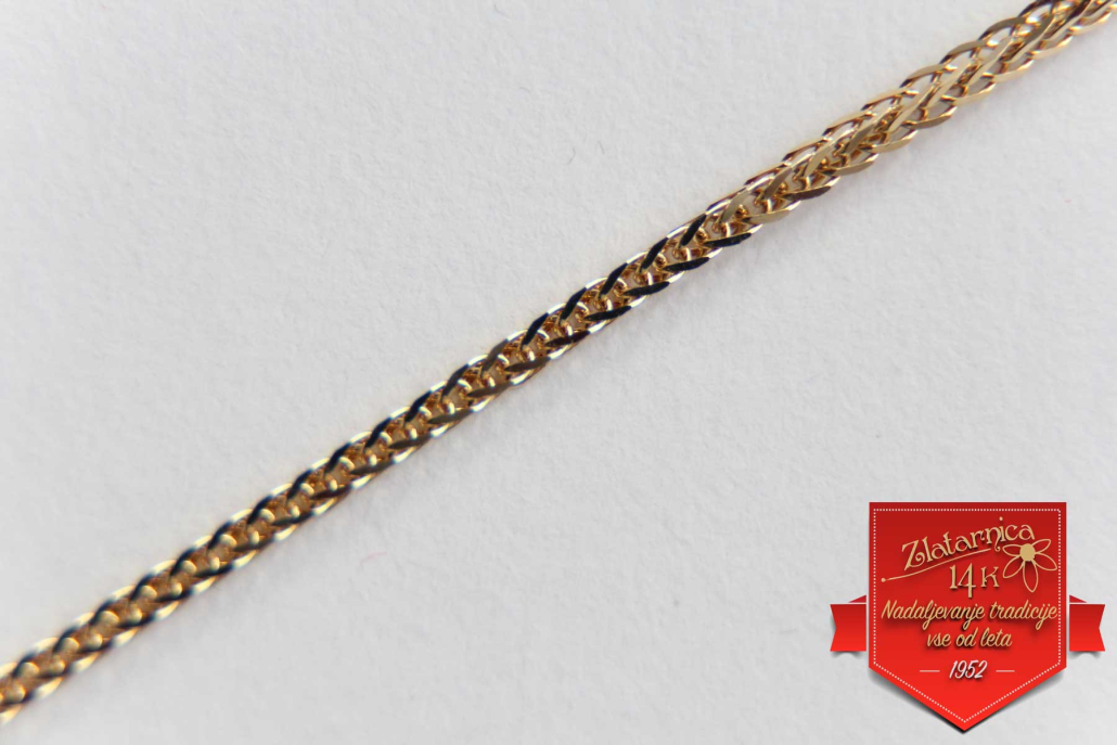 Verižica iz rumenega zlata, ki jo sestavljajo členi, vezani v vezu diana.