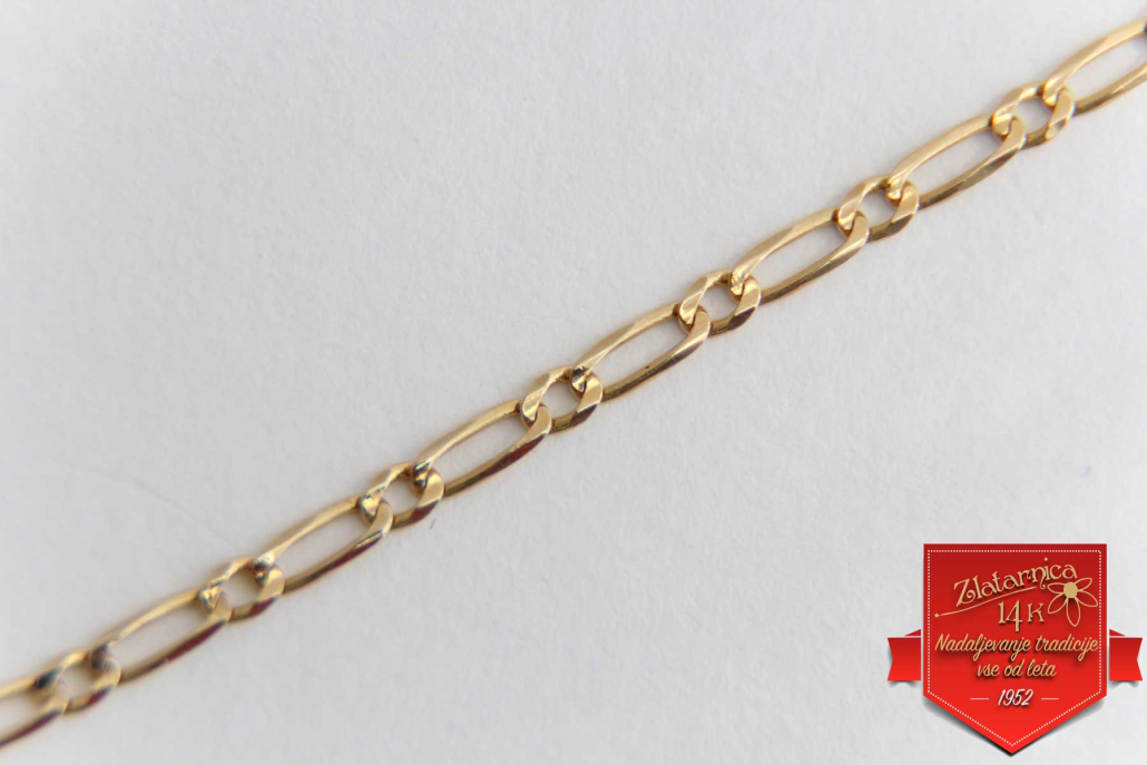 Verižica iz rumenega zlata, ki jo sestavljajo podolgovati in okrogli členi, ki se med seboj izmenjujejo.