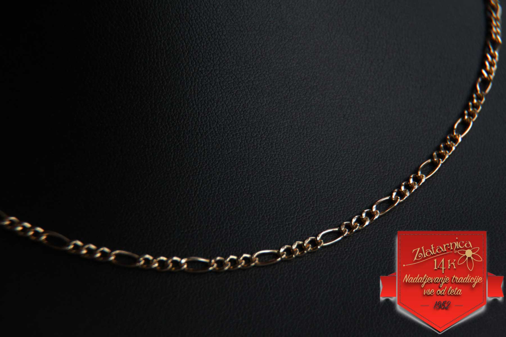 Verižica vzorca Figaro iz rumenega zlata.