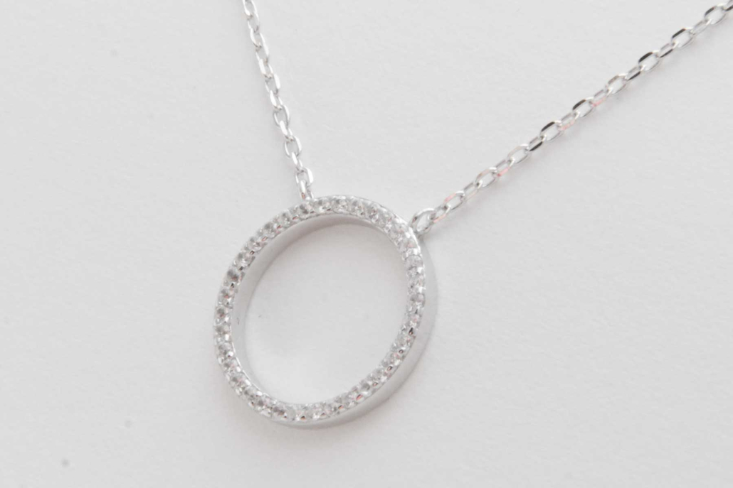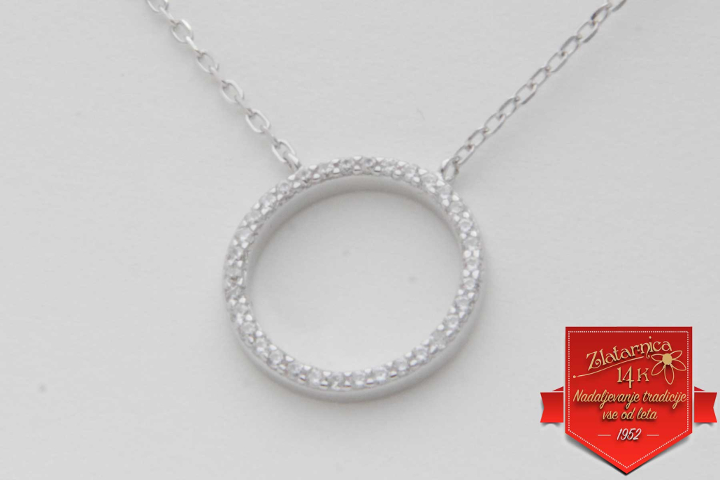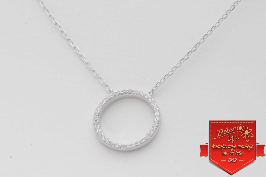 Srebrna verižica anker z vstavljenim krogom obdelanim s cirkoni.
