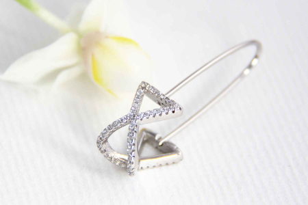 Elegantna broška v obliki varnostne zaponke s cirkoni.