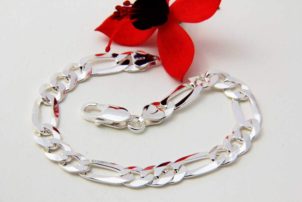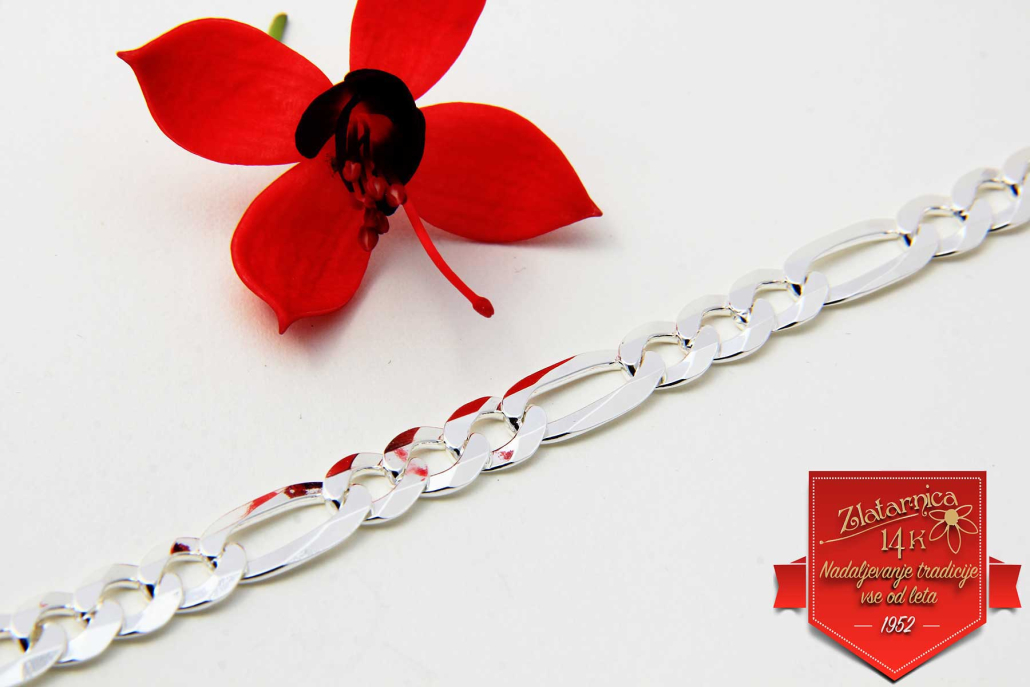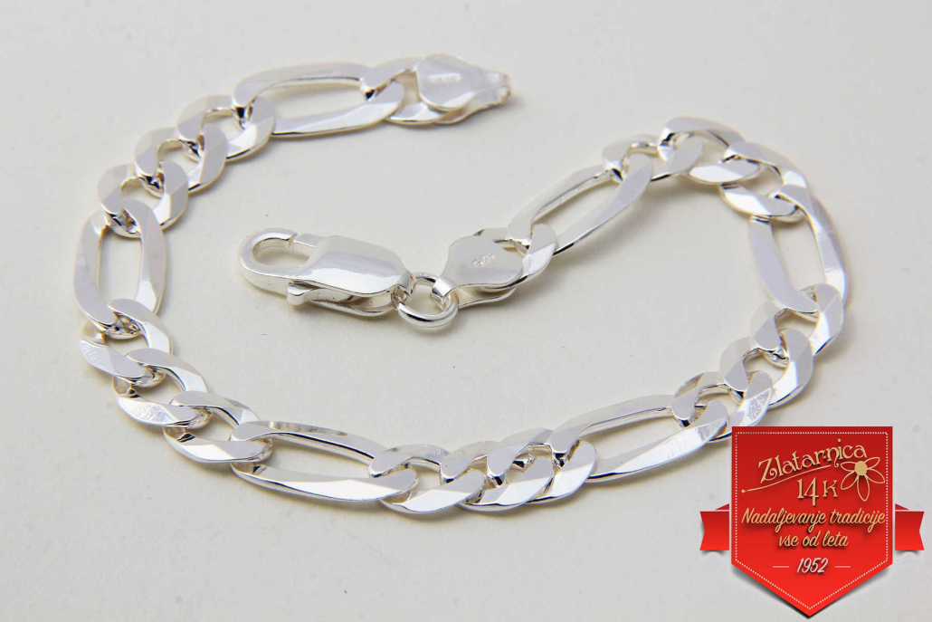 Masivna moška zapestnica iz srebra s členi, povezanimi v vezu figaro.