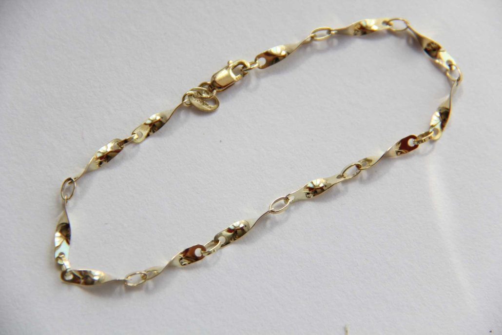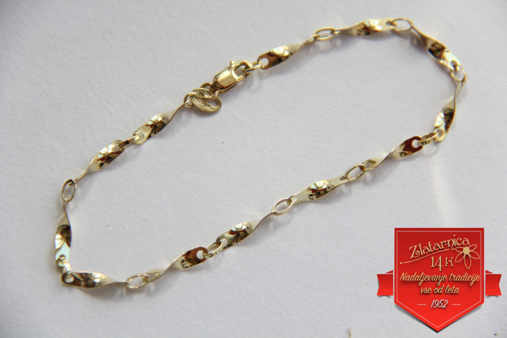 Zapestnica iz rumenega zlata iz ovalnih rahlo zasukanih ploščic.