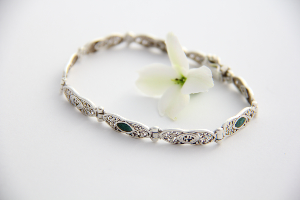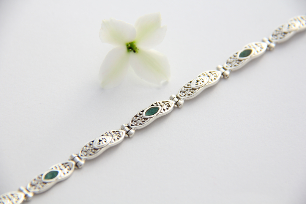 Vintige zapestnica sestavljena iz vzorčastih členov z malahiti v obliki čolničkov.