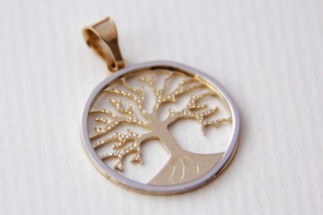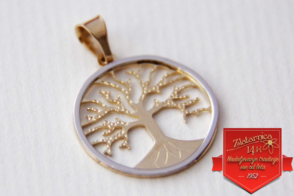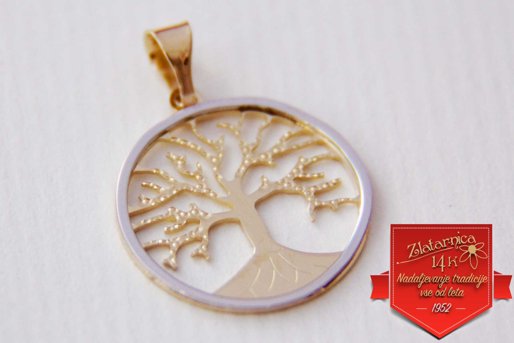 Obesek je izdelan iz kombinacije dveh barv zlata. Sestavljajo ga: elegantno deblo z vgraviranimi koreninami in veje s diamantiranim vzorcem iz rumenega zlata, ter obroba v obliki kroga iz belega zlata.