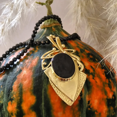 Unikatni zlati obesek v obliki večje poščice, primeren za moške.