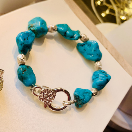 Unikatna zapestnica z naravnimi turkizi in okrasno zaponko.